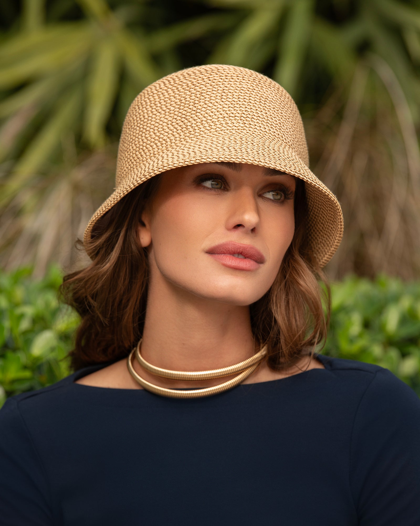 A women’s Cloche hat for sale online in Javits’ signature row on row Squishee® packable straw in a shape inspired by hats popularized in the earlier part of the last century.